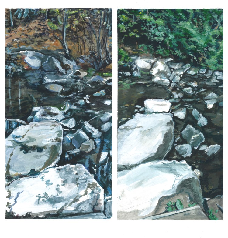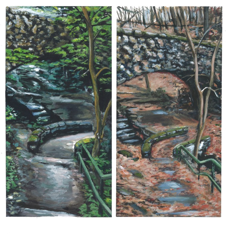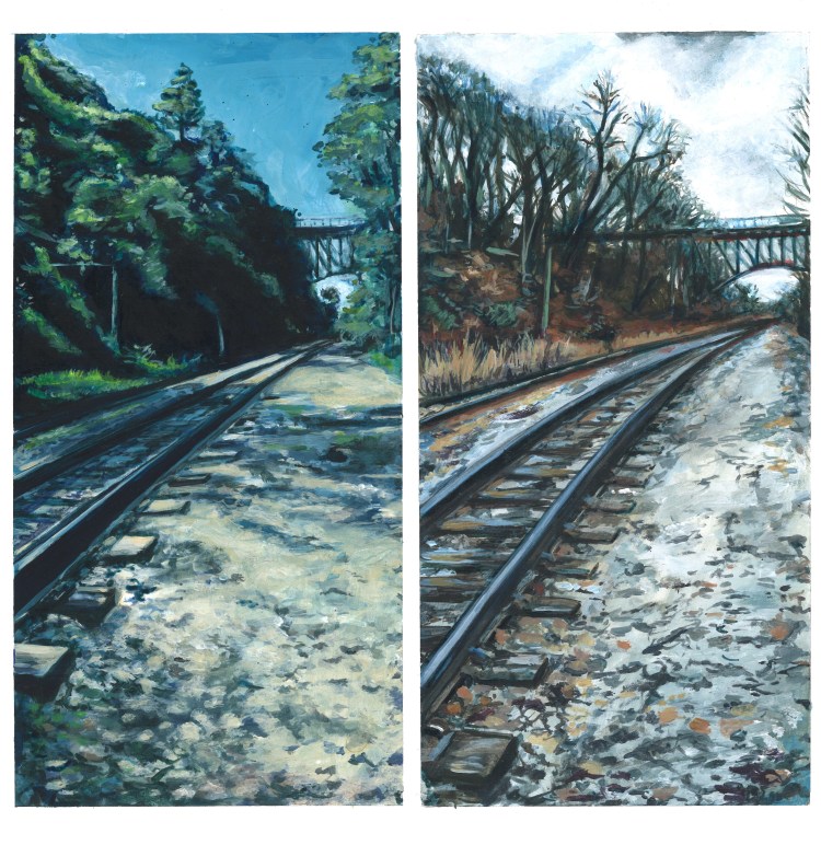 Fall 2020, I took a trip to PA to visit a dear friend… Suffice to say, I took a lot of photos during my stay (as always when I travel to new places). As I rifled through the images back home there was something familiar about them… I looked back at the photos my PA friend had sent me earlier that year in the summer. Comparing my photos to hers, I realized that my photos were of the same exact railroad, trails, and streams captured at roughly the same angles as her photos… Super weird discovery and definitely not planned!