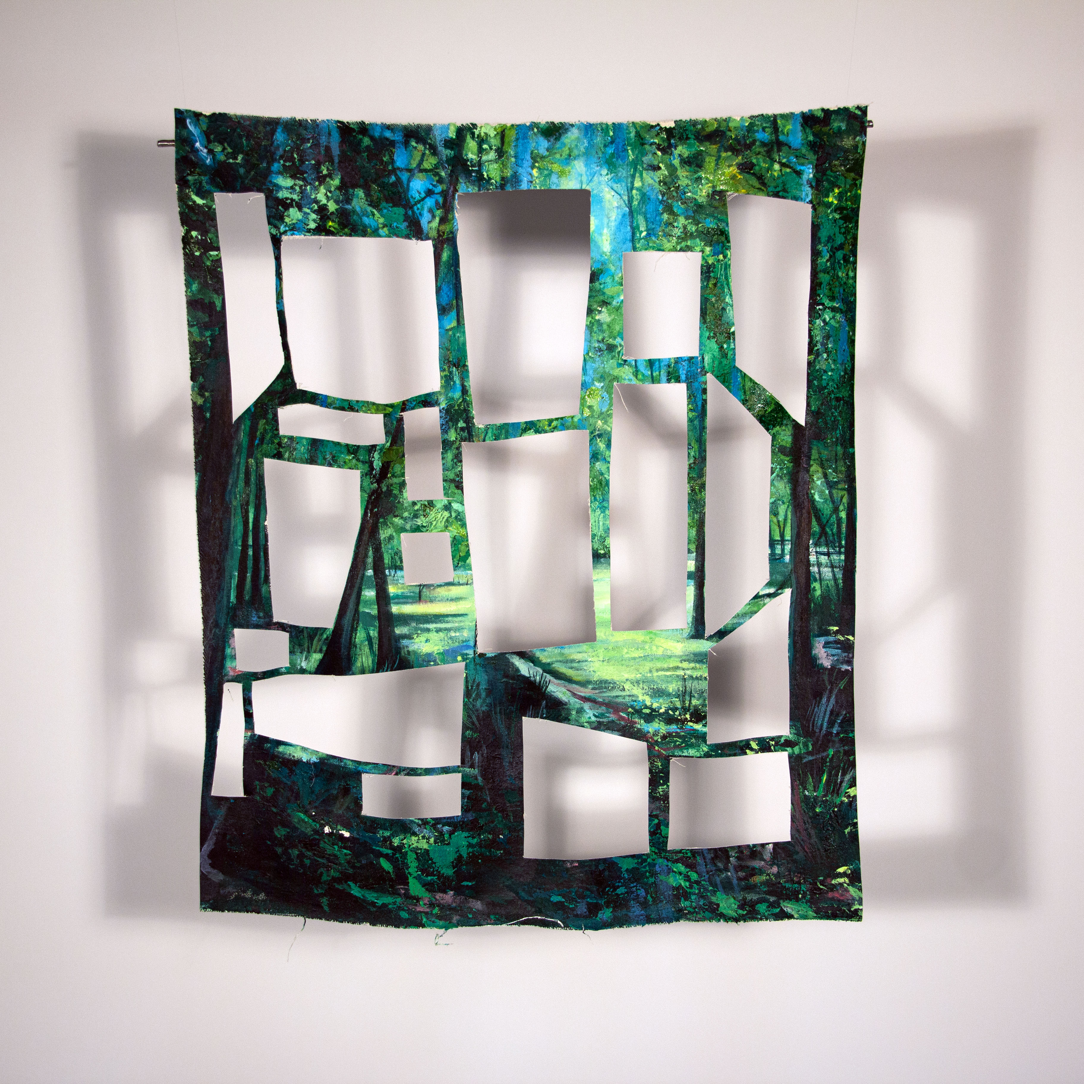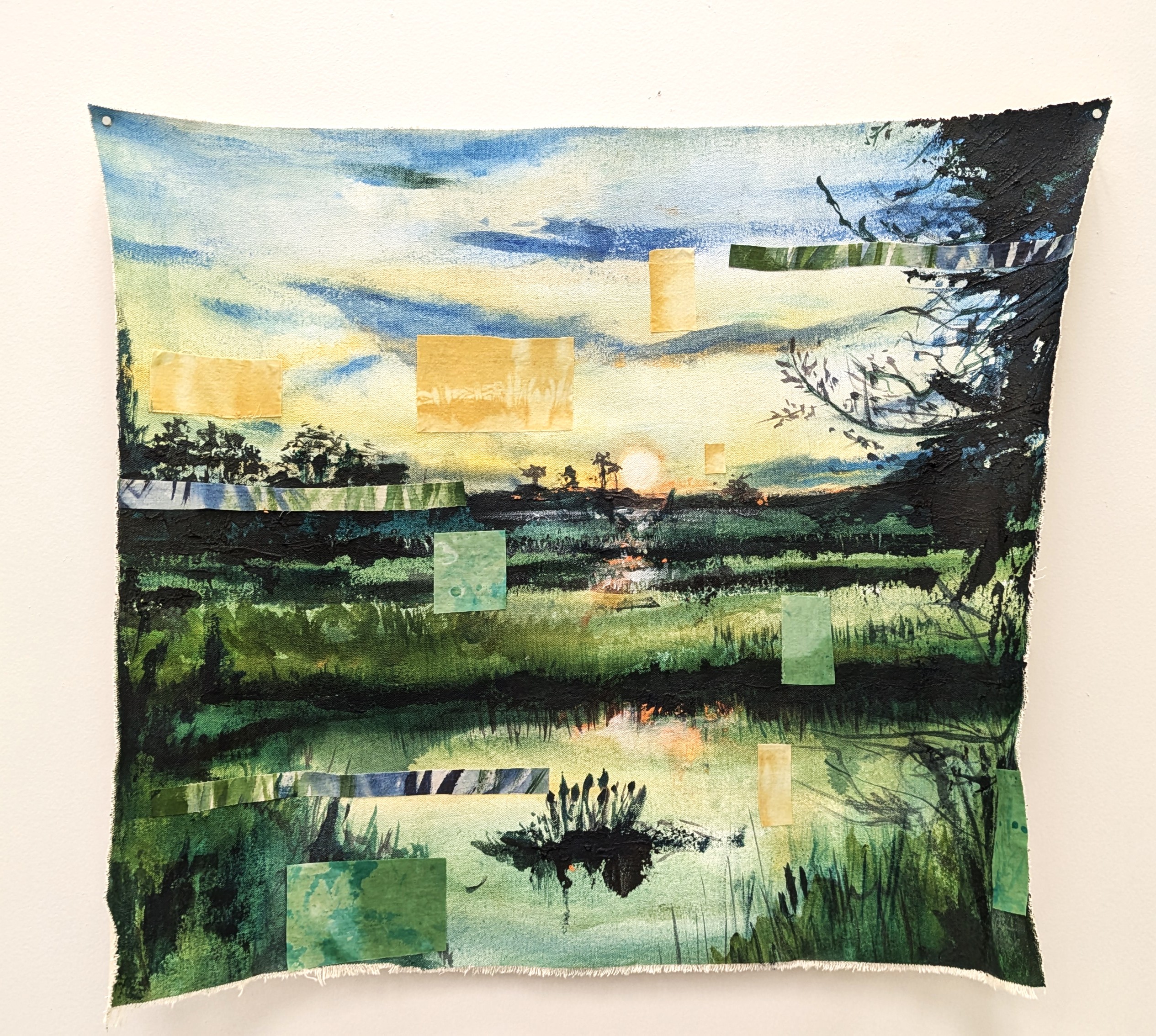 “Viewfinders”, acrylic on canvas, 26 x 24″ (2024)“Mind the Gaps”, acrylic on canvas and muslin, 26 x 36″ (2024)“Beyond Familiarity”, collaged canvas, photo, and muslin painting , 24 x 18″ (2024)“Fleeting Knowledge”, collaged canvas, photo, and muslin painting , 24 x 18″ (2024)Experimental Painting, acrylic on canvas, 16 x 27″ (2024)Experimental Painting 2, acrylic on woven canvas, 14 x 25″ (2024)Experimental Painting 2, acrylic on woven canvas, 26 x 14″ (2024)“Out of Place”, acrylic on canvas, 20″ x 26″ (2024)