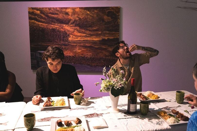 At the end of semester, I co-hosted a midnight dinner with artist Alexia Benavent-Rivera, which is a collaborative art and food project working with other members of my MFA cohort. It consisted of a four-course meal fusing together my Filipino roots to the Puerto-Rican, Panamanian, and Ukrainian roots of Alexia to create a delicious menu and new experience. My personal goal for this project was to connect to my own familial history and ancestral past and express my understanding of it through food, allowing participants to taste the flavors of the Philippines and engage the meal through kamayan.
